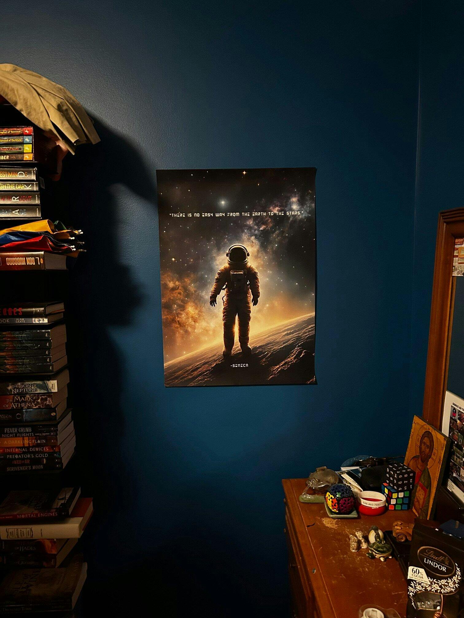 I love this poster! It was delivered safely and in perfect condition. When I looked super close (My face was 2cm-3cm from the poster) there the image was a little blurry but upon hanging it in my room I was in love with the visual. It is super vibrant and serves as a daily reminder to keep pushing forward.